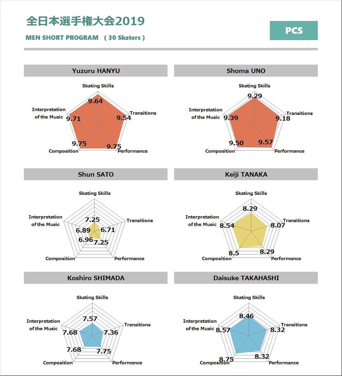 【#全日本選手権】男子ショートのPCS。 (1~5位+PCS3位の #高橋 選手) -