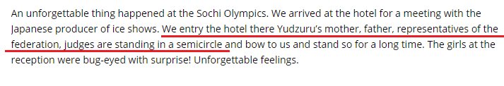 2017-08-11 息を吐くように嘘をつく 日記 #練習用 ナタリア・ベステミアノワインタビューより 「ソチ五輪では忘れられない出来事があった。 ~私達がホテルに入ったら、羽生の母、父、連盟の代表、ジャッジ達が半円形に並んで立ってた。~」http://bit.ly/2EZKrkU 五輪開催中にジャッジ達と一緒にねえ。 テレビではわざわざ「選手村にいて、町田選手と同室だった」と簡単に嘘を言う。 >「デマを流す人がいる」というデマを流す羽生信者。 >Finsmalock2000 @finsmalock2000 8月9日 羽生選手の今シーズンの選曲がいわゆる”目新しさ”には欠けているのは否めないが、五輪イヤーに新機軸を打ち出すようなことをトップ選手はあまりしない傾向はこれまでもあって、今の自分の力と感性に最もフィットする曲を選ぶ。曲選び1つでジャンプの成功率すら変わるほど精神的に影響があるから。 21:09 - 2017年8月8日 >導きファンどうなってるんだよオイ、発狂しすぎだろ 「フラットエッジは技術の証」 「フリーレッグがディープエッジ」 そんなに導かれ隊なのか、どこを目指すんだいったい(戦慄)