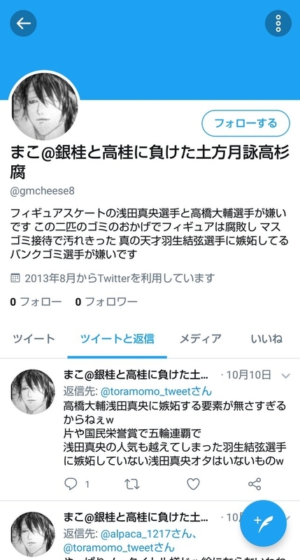 「僕が優勝しても誰も喜ばない」「あのジャンプが成功しても絶対に僕が勝っていた」「人前で居眠りするバカは俺が可愛がる」等、数々の妄言を繰り返し自ら信者を煽り、全く非がない相手を攻撃させてきた、羽生結弦に負けた宇野昌磨浅田真央