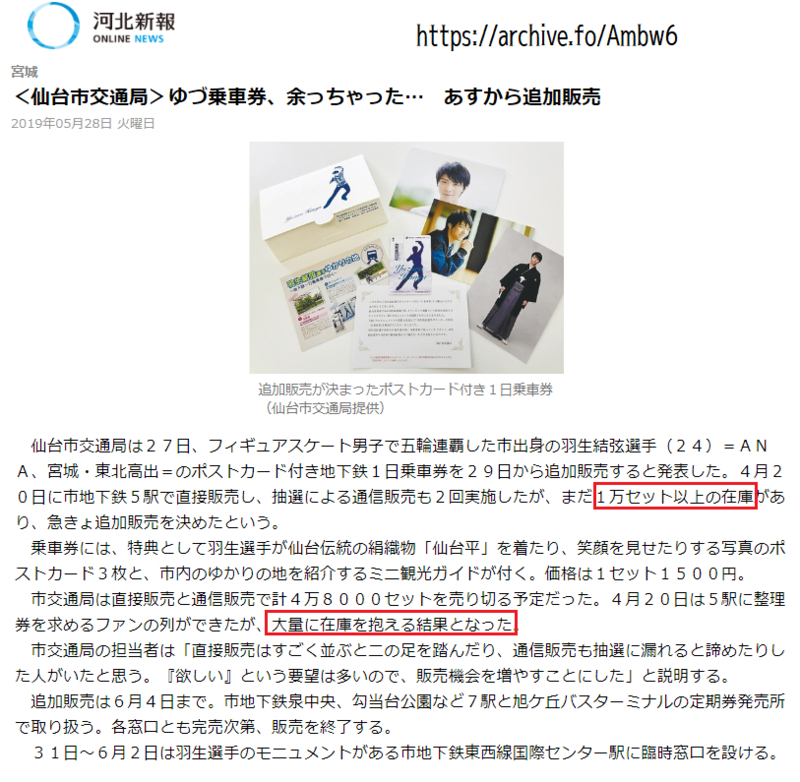 <仙台市交通局>ゆづ乗車券、余っちゃった… あすから追加販売 | 河北新報オンラインニュース / ONLINE NEWS https://sp.kahoku.co.jp/tohokunews/201905/20190528_12023.html …