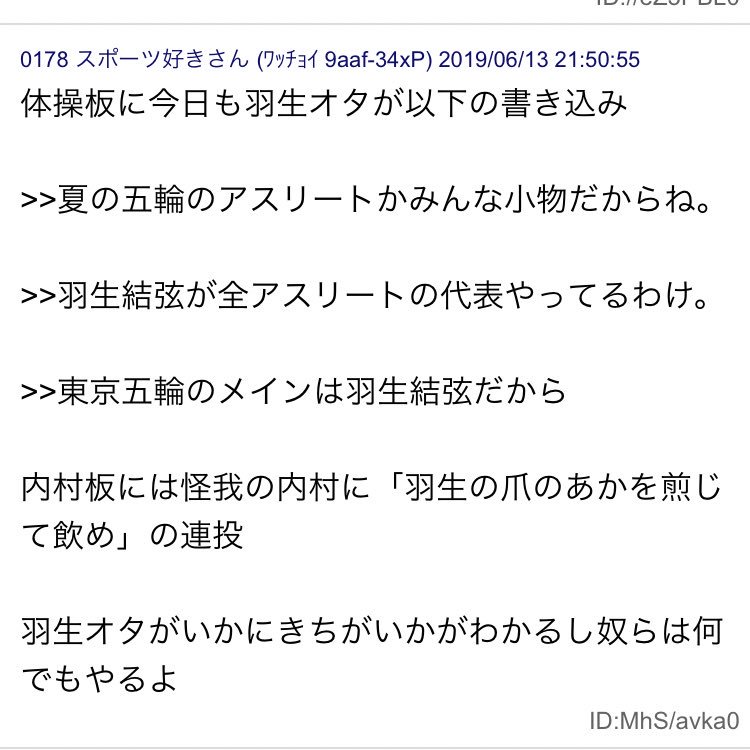 体操板にとんでもない書き込み。羽生(結弦)オタはこんなんだから、全方位から嫌われるんだよ。内村板にもとんでもない書き込み。内村航平選手ファンの皆さん、怒っていいですよ